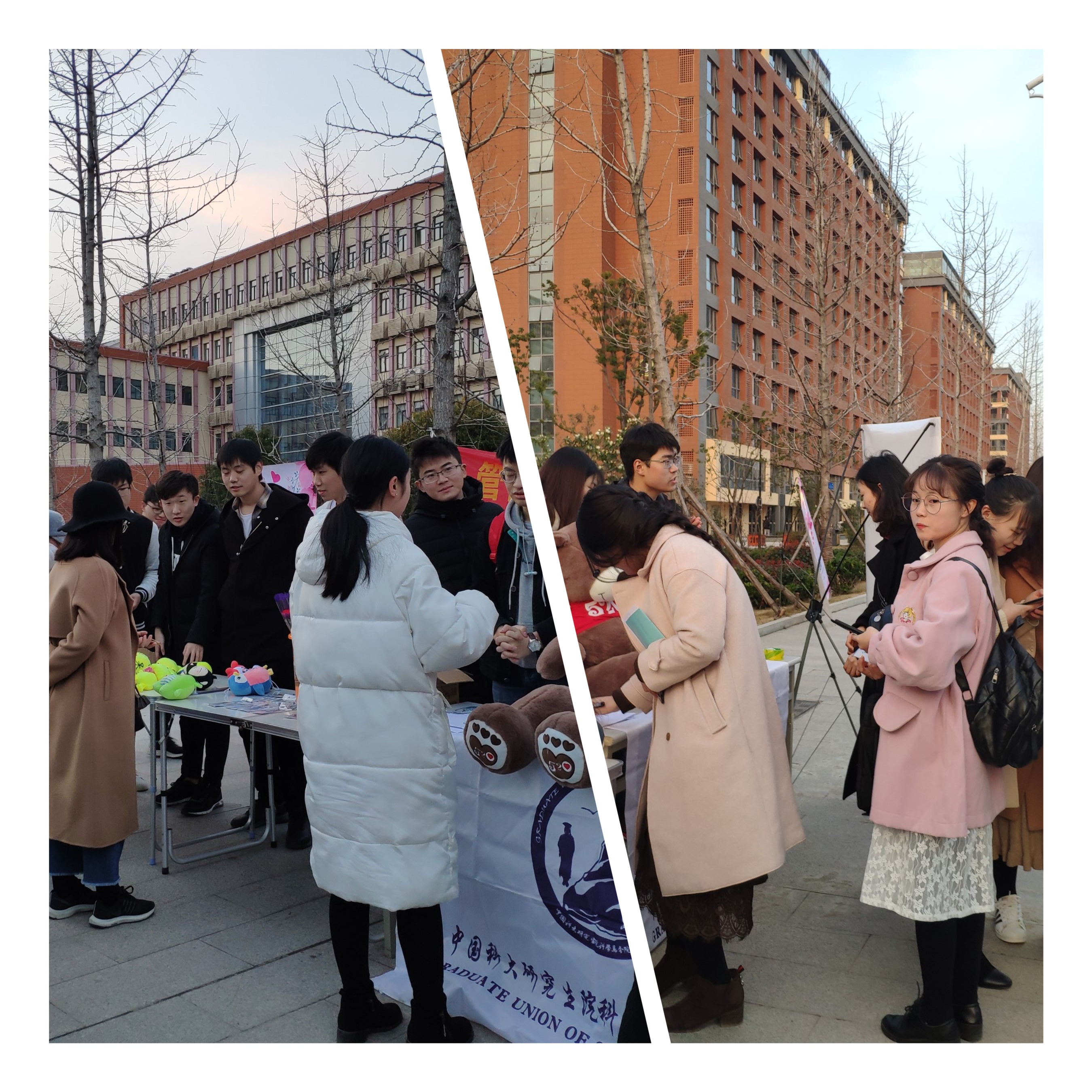3月7日下午5点半,研究生会在科大中区桃李苑食堂附近,为所有经过的女生送去福利,并进行了一些趣味活动。活动准备的50支康乃馨、25个玩偶、20盆多肉植物、50个印有科学岛logo的钥匙扣全部赠送一空。