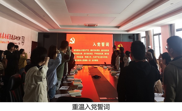 3月25日下午,研究生健康所党支部召开组织生活会。首先,全体党员在支部组织委员黄光耀带领下重温入党誓词。面对鲜红的党旗,全体党员一字一句的庄严宣誓,体现了党员同志们对中国共产党的无限忠诚,坚定了入党使命,奋斗初心。