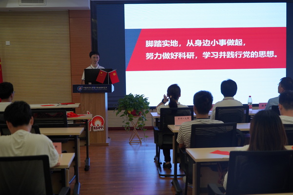 研究生党委书记徐伟宏首先致辞。他回顾了研究生党委和等离子体所党委举办的各项活动,以及这些活动为党员同志和全所师生带来的学习和教育作用,鼓励青年党员们不忘初心、锐意进取,把科研工作和党员精神结合起来。