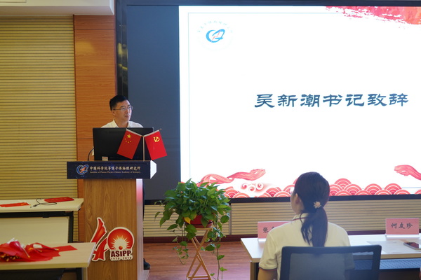 在仪式的最后,吴新潮书记做总结讲话。吴书记首先介绍了等离子体所党委对今年建党活动的规划历程。结合刚刚结束的庆祝建党百年典礼上习近平总书记的重要讲话,吴书记对到场的研究生党员们提出了更高的期望和要求。最后,吴书记给年轻的党员们一些寄语,希望青年科学工作者用心体会并践行等离子体所大科学文化的精神。