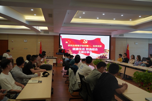 为深入学习贯彻习近平总书记有关建设健康中国的重要论述,响应普及健康生活的口号,增加研究生的生活趣味性,提高研究生身心健康水平。2021年7月20日下午,研究生等离子体所第一党支部、第五党支部联合举办了“健康生活,劳逸结合”为主题的分享会,支部全体研究生党员及入党积极分子参加,活动由支部书记靳兴月、李雪纯组织。
