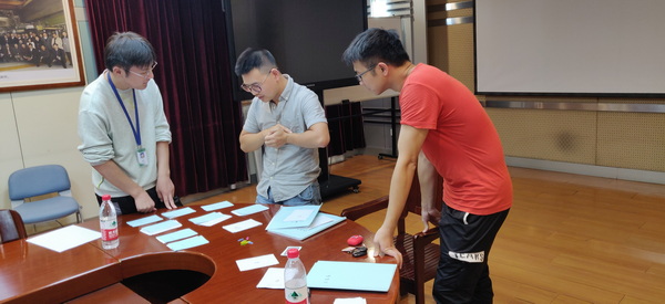 经过研究生等离子体所第四党支部支部委员们的精心安排和积极筹备,活动于8月28日下午两点在等离子体所四号楼三楼中间会议室开展,活动伊始,支部书记郑文明同志为大家讲述了在兵荒马乱、暗流涌动的民国时期,共产党为了实现突破国民党和日本阵营的围剿,所付出的巨大牺牲。接着,主持人吴珂为大家讲解了活动规则以及注意事项,由于参加人数较多,活动分两组进行,党员同志们在拿到剧本后,积极进行角色的演绎以及线索的推理,最终逐步逼近事实的真相。在对剧本的理解以及角色代入的过程中,大家被共产党员一心为民、不畏牺牲的思想所感化。