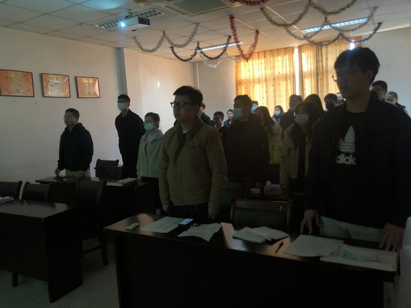 大会首先听取了陈照同志的了入党汇报,经线上投票后同意吸收陈照同志成为预备党员。随后组织委员刘世春带领支部成员开展十九届六中全会知识学习,并通过线上知识竞答的形式调动支部党员的学习积极性。会议的最后,近期转正的党员和刚被接收的预备党员在组织委员刘世春的带领下宣读了入党誓词,希望各位党员可以永远牢记入党时的初心,对党忠诚,服务人民。