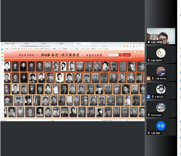 活动中,全体党员通过中华英烈网(http://www.chinamartyrs.gov.cn/)进一步了解革命先辈英勇事迹,并通过“网络祭扫”渠道向先烈鞠躬致敬、敬献花篮、发表祭奠留言、以绿色低碳环保的方式缅怀先烈。