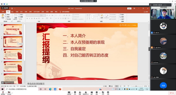 本次线上活动同时召开了支部党员大会,讨论预备党员汪洋同志转正事宜。经过情况介绍、个人汇报、介绍人介绍、支部介绍等环节,经不记名的线上投票,全票通过,同意其按期转为正式党员。