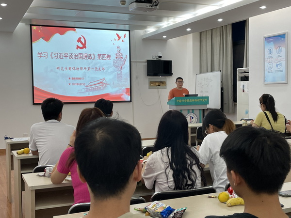 为喜迎党的二十大,深刻领会习近平新时代中国特色社会主义思想,8月25日,研究生固体所第一党支部召开支部会议,深入学习《习近平谈治国理政》第四卷。会议由党支部书记成祥主持,全体党员和入党积极分子参加。