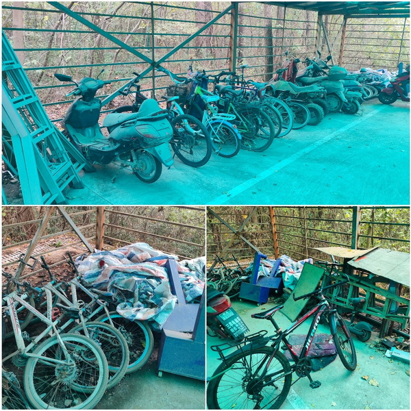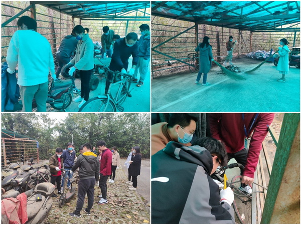活动当天,支部成员在总部车棚集合,分区域、分类别完成清理工作。各个同志相互配合,将长期无人认领的废旧车辆及其他杂物转移到指定地点,将地面上的垃圾、落叶、泥土等清扫干净,并将随意摆放的车辆摆放整齐。清理工作井井有条地进行着,每一个角落都没有被放过。全体同志不怕脏不怕累,用实际行动为身边的老师和同学们做好服务工作。经过近一个小时的清理,车棚焕然一新,原本杂乱的区域变得宽敞、有序,原有的安全隐患也被顺利消除。此外,为了更好地为老师、同学提供便利,支部还分别在总部D楼和材料中心L楼准备了高压打气筒,供有需要的老师和同学使用。