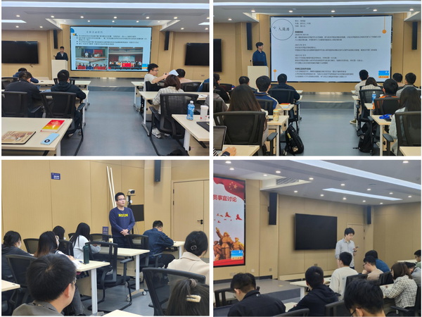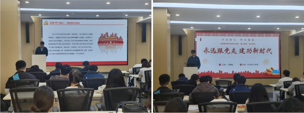 大会第三项,由张宇轩和周坤勐同志进行学习分享。张宇轩同志分享了关于《习近平谈治国理政》第四卷的相关内容,鼓励大家要牢记打铁必须自身硬的道理,继续发扬彻底的自我革命精神,要大力弘扬伟大建党精神,牢记初心使命,增强忧患意识,始终保持赶考的清醒和坚定,以一往无前的奋斗姿态和风雨无阻的精神状态,踔厉奋发、笃行不怠;周坤勐同志分享的主题为《永远跟党走 建功新时代》,鼓励我们永远跟党走,青春献祖国,要刻苦学习专业知识,提高自身各方面的素质,使我们成为一名出色的社会主义人才,为国家发展作贡献。