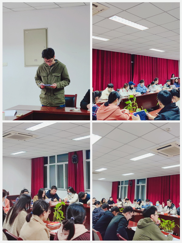 大会在国歌声中开幕。按照转预备党员规程,首先由程硕同志宣读《入党志愿书》,向党组织汇报对于党的认识、入党动机、个人经历及入学表现等。随后程硕同志的入党介绍人阚文杰同志和丁双双同志对其相关情况及具体表现进行了介绍,一致肯定了他在科研生活上的优异表现,希望他在未来的日子里积极参加党内活动,坚定不移跟党走。经支部大会投票,与会党员全票表决通过,同意接收程硕同志为预备党员。