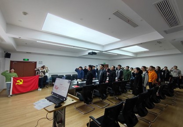 会议最后一项,在组织委员的带领下,全体党员同志重温入党誓词。至此,本次党支部大会圆满结束。与会党员纷纷表示,将会进一步增强学习贯彻党的二十大精神,切实把思想和行动统一到党的二十大精神上来,自信自强、守正创新,踔厉奋发、勇毅前行,为全面建设社会主义现代化国家、全面推进中华民族伟大复兴贡献力量。