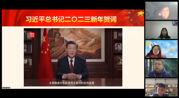 会议伊始,全体党员一起聆听了习近平总书记的新年贺词,在总书记的带领下回望过去的奋斗道路,眺望前路的光明征程,从对“今天的中国”的定格和对“明天的中国”的期盼中感悟我们这一代人的历史使命,从对青年的寄语中感受总书记的殷殷嘱托,汲取奋斗的力量,以饱满的姿态迎接新的一年。