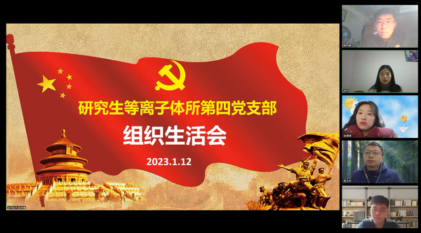 1月12日下午,研究生等离子体所第四党支部召开了线上组织生活会暨一月份党日活动,会议由支部书记吴珂主持,全体党员参与会议。