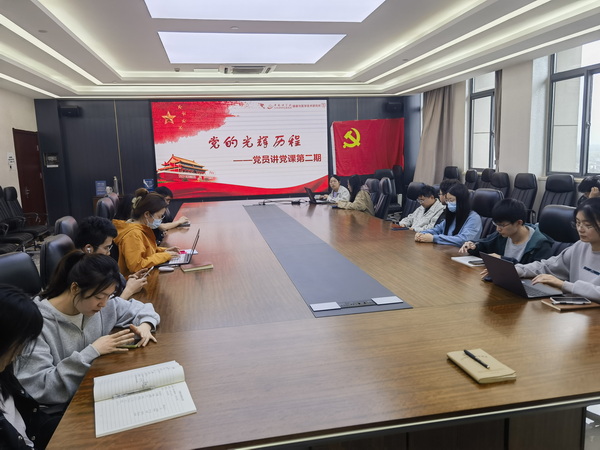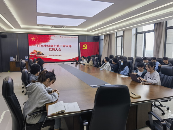 5月24日,研究生健康所第二党支部召开党员大会,以党员同志分组讲课的形式重温中国共产党的光辉历程。会议分为交叉科研楼和中科院合肥肿瘤医院两个分会场,会场之间通过腾讯会议互动。