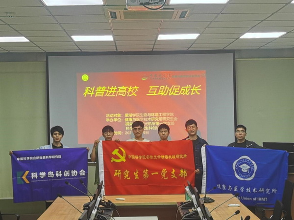 6月5日晚,由研究生安徽光机所第一党支部主办,健康与医学技术研究所研究生会、科学岛研究生科创协会以及巢湖学院生物与环境工程学院共同协办的“科普进高校,互助促成长”线上科普交流活动在安光所光学遥感中心D115会议室成功举行。本次活动邀请了巢湖学院生物与环境工程学院的师生参加,旨在加强科学岛与巢湖学院的交流合作,推广科普知识和文化,搭建双向人才培养的桥梁。
