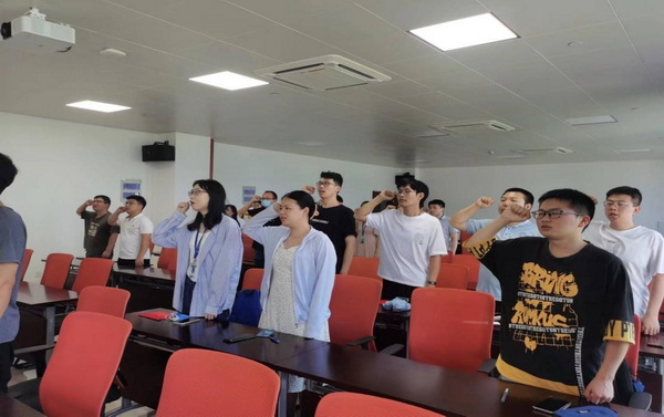 评选优秀党员后,为让广大党员同志不忘入党初心,坚定共产主义信念,强化共产党员的责任感、使命感,增强党组织的凝聚力与战斗力,举行了重温入党誓词活动。“我志愿加入中国共产党,拥护党的纲领,遵守党的章程……”,在支部书记钱钱的带领下,全体党员面对誓词,举起右拳,庄严宣誓。每一位党员字字铿锵,心潮澎湃,回顾了自己在入党宣誓时的庄严承诺和坚定信念,心灵再一次受到洗礼,思想又一次得到升华。在同过政治生日的温暖中,更加感受到党组织的先进与团结。大家表示,要以时不我待的紧迫感和责任感积极投入到科学研究中。
