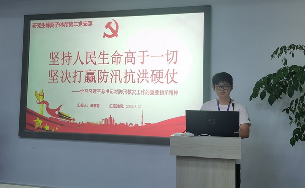 8月30日晚,研究生等离子体所第二党支部于四号楼四楼中间会议室开展了围绕“批评与自我批评”的组织生活会与学习防汛抗洪精神主题党课学习,会议由支部书记汪志勇主持。