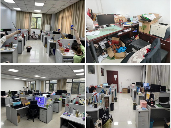 大扫除当天,全体师生在各自办公室进行大扫除。党员同志发扬不怕脏、不怕累的精神,并鼓励办公室内其他同学共同参与。首先是对办公室无人认领的杂物,办公设备进行处理,按照要求,放置杂物间,其次是佩戴手套和口罩,使用专业的清洁用品,对天花板及四周的蜘蛛网、窗户玻璃及窗帘进行了打扫,最后同学们对公共设备如空调,书柜,以及办公桌进行整理和清洁,有的用抹布擦拭书桌,有的对办公室地面的垃圾进行清扫,有的负责拖地。经过近两个多小时的清理,办公室焕然一新,原本杂乱的区域变得宽敞、有序,原有的安全隐患也被顺利消除。这次大扫除过程中,大家不仅完成了各项任务,还表现出了团队协作、责任心和积极性。他们共同努力,克服了各种困难,展现出了党员同志凝聚力、向心力和战斗力。