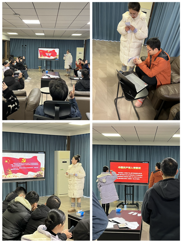 支委会介绍了对其教育、考察情况,充分肯定了于庆泽同志在预备期间内坚定理想信念,始终保持对党的忠诚,积极学习理论知识,在工作中稳中求进,守正创新,表现出一名共产党员的优秀品质。随后大会以无记名投票方式进行表决,一致通过了于庆泽同志按期转为中共正式党员,苏畅同志宣布支部大会决议后全体党员重温中国共产党入党誓词,于庆泽同志转正仪式正式结束。
