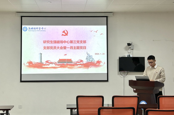 1月24日,研究生强磁场中心第三党支部在交叉科研楼南楼206会议室召开了支部党员大会暨1月主题党日活动。支部书记章鹏主持会议。