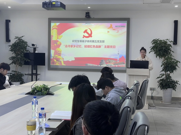 红色记忆流淌着鲜活的红色血脉,蕴含着伟大的建党精神。3月15日下午,研究生等离子体所第五党支部组织全体党员于四号楼三楼会议室开展“追寻家乡记忆,延续红色血脉”主题党日活动,活动由支部书记王巧玲主持。
