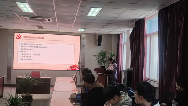 3月21日下午,研究生安光所第四党支部在安光所综合楼512室召开党支部大会。大会应到63人,实到47人。会议由支部书记俞沁怡主持,采取线上线下结合的方式开展,议程共分为三项:党课学习、预备党员转正以及春节主题摄影大赛总结分享。