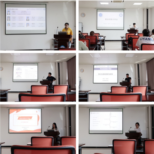 此次就业分享会邀请了蒋皓天、周涵、张永森、张艳琪、魏梦珂等五位毕业生代表。蒋皓天从个人简介、就业选择和笔试面试三个方面进行分享。周涵从科研、公务员备考、事业编备考、企业就业等方面介绍了自己的经验。张永森主要向同学们分享了自己博士生涯的回顾与感悟。张艳琪着重介绍了山东专额选调的备考过程,包括山东专额定向选调概况、岗位选择、笔试备考、面谈备考。魏梦珂介绍了事业单位、国考、省考的备考经验,并且向同学们推荐了相关学习软件和公众号。五位毕业生倾囊相授并为现场同学解答疑惑,提出合理的就业建议。