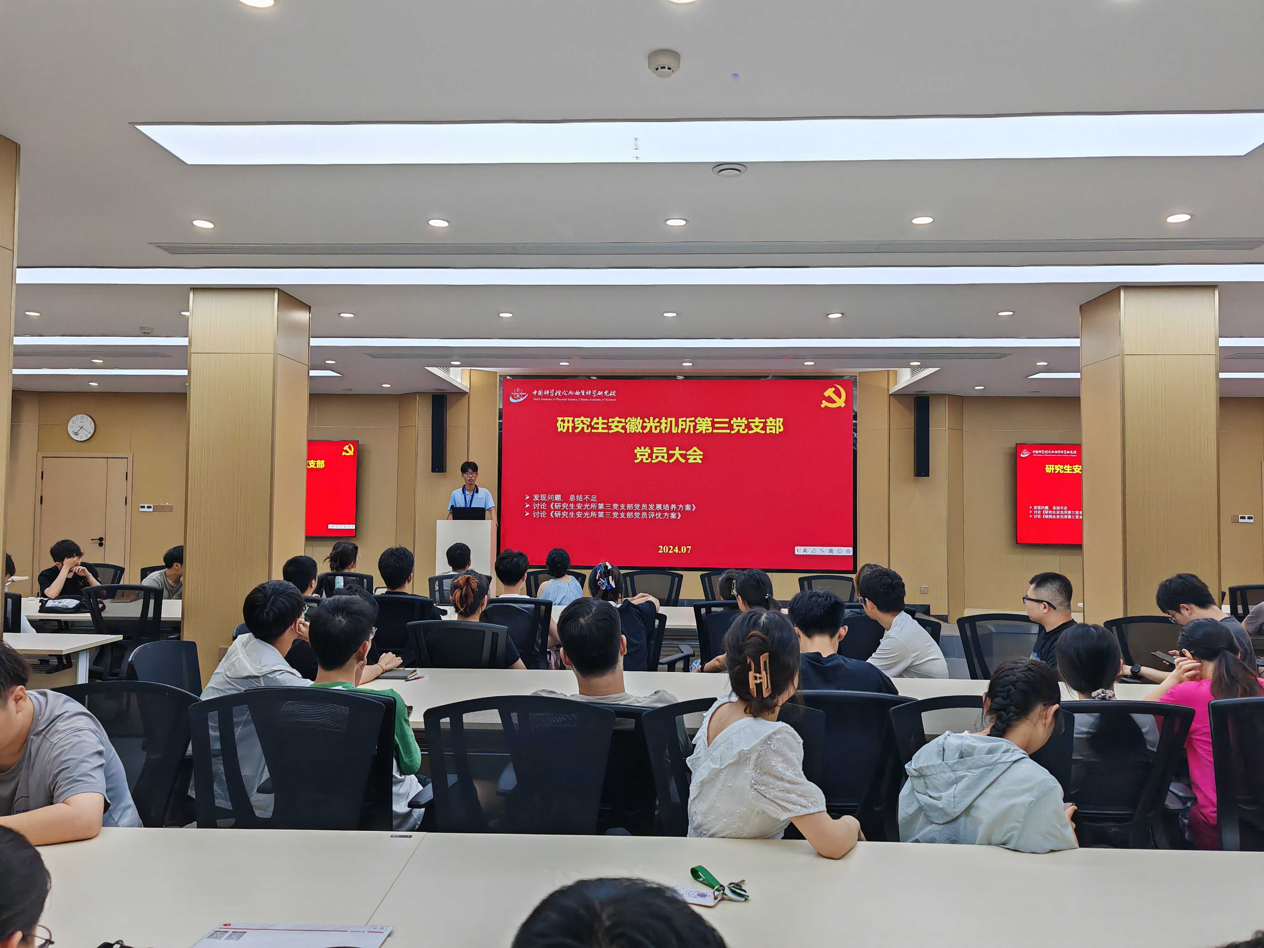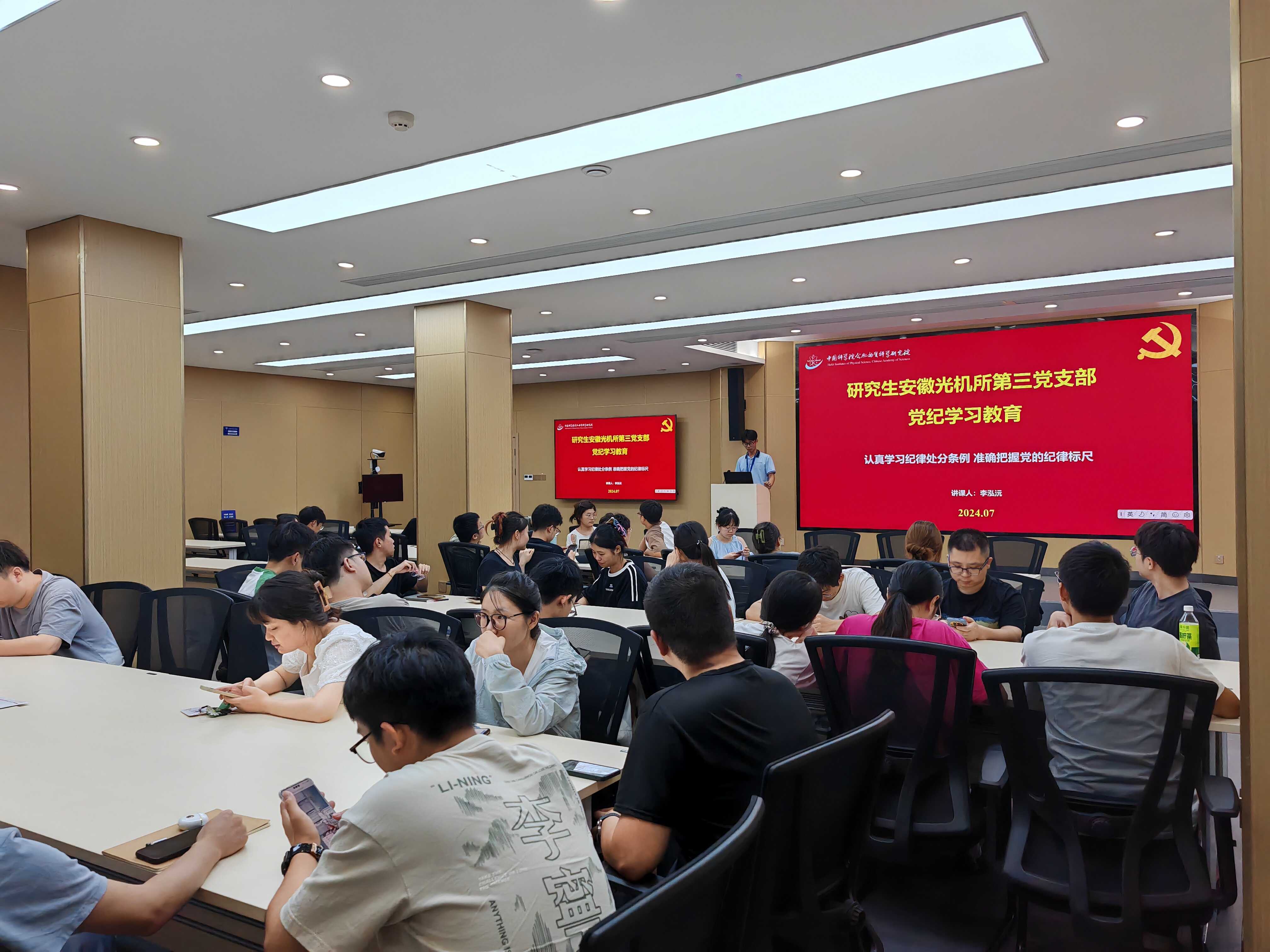 7月24日,第三党支部召开党员大会暨“认真学习纪律处分条例,准确把握党的纪律标尺”专题党课。并充分讨论了《研究生安光所第三党支部党员发展培养方案(讨论稿)》、《研究生安光所第三党支部党员评优方案(讨论稿)》。