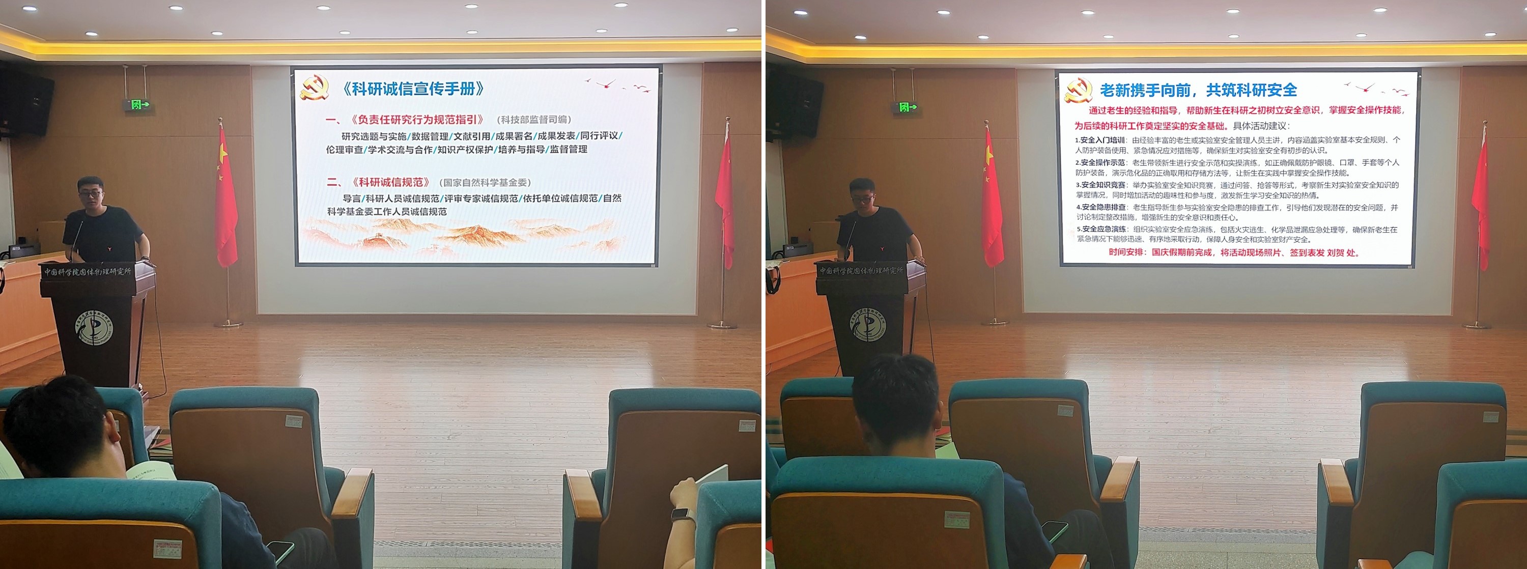 会议还进行了党小组组长竞选、科研诚信教育、安全培训布置、国庆假期安全提醒等内容。