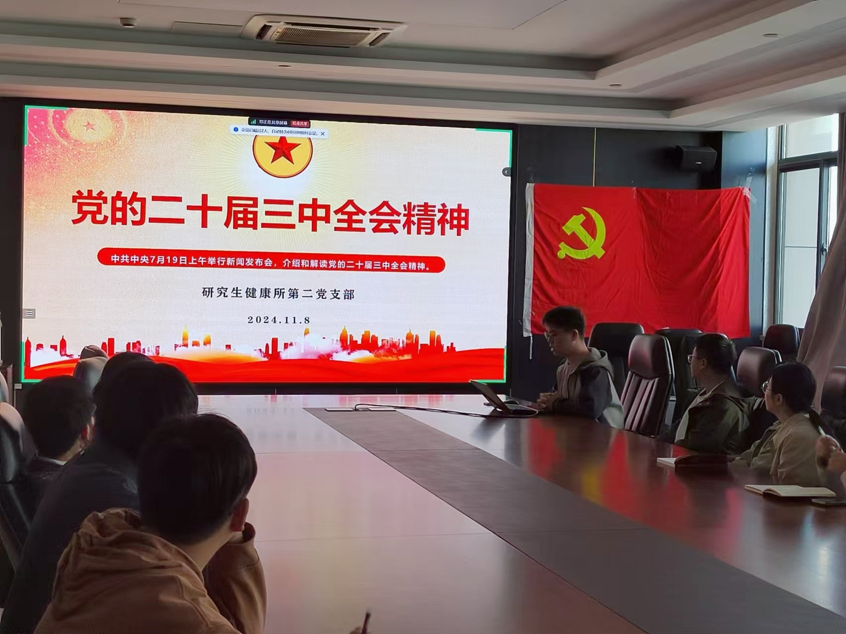 11月8日,研究生健康所第二党支部在交叉科研南楼908组织召开党员大会,并以党课的形式深入学习党的二十届三中全会精神。会议由支部书记刘亚鹏同志主持,肿瘤医院党小组和24级科大党小组线上参会。