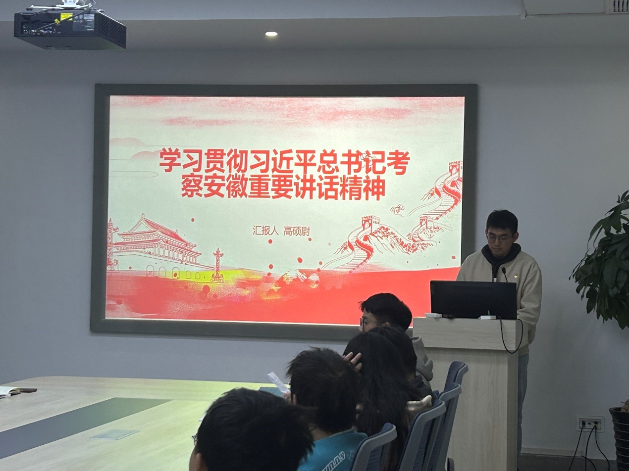 最后,由高硕尉同志带领大家学习贯彻习近平总书记考察安徽重要讲话精神。他希望研究生党员同志深刻领会讲话精神,立志为国家的科技创新和社会发展贡献自己的力量。