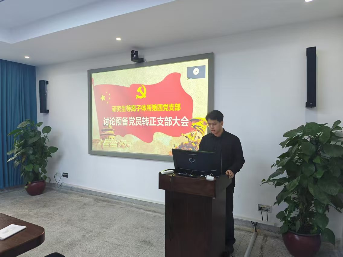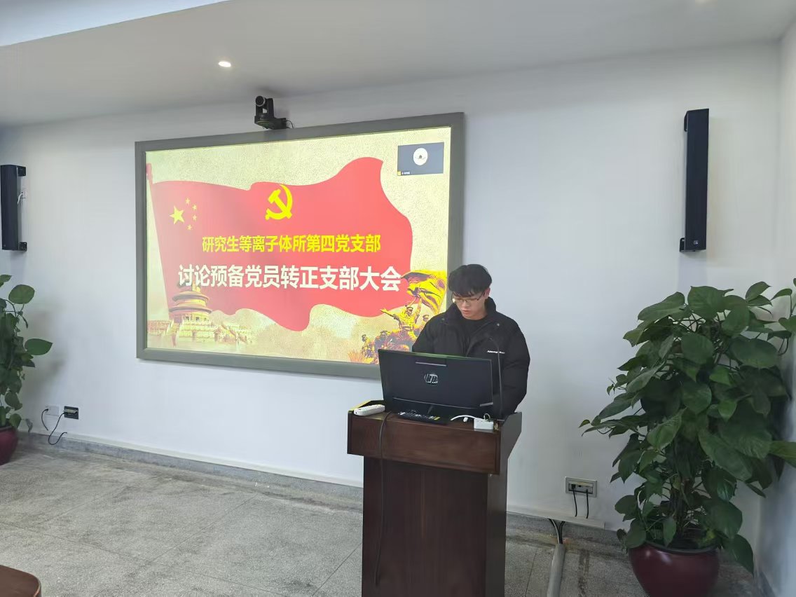 研究生等离子体所第四党支部于12月4日下午在等离子体所四号楼五楼会议室召开支部党员大会,大会由支部书记邓羽佳主持。采取线上线下相结合的方式开展。