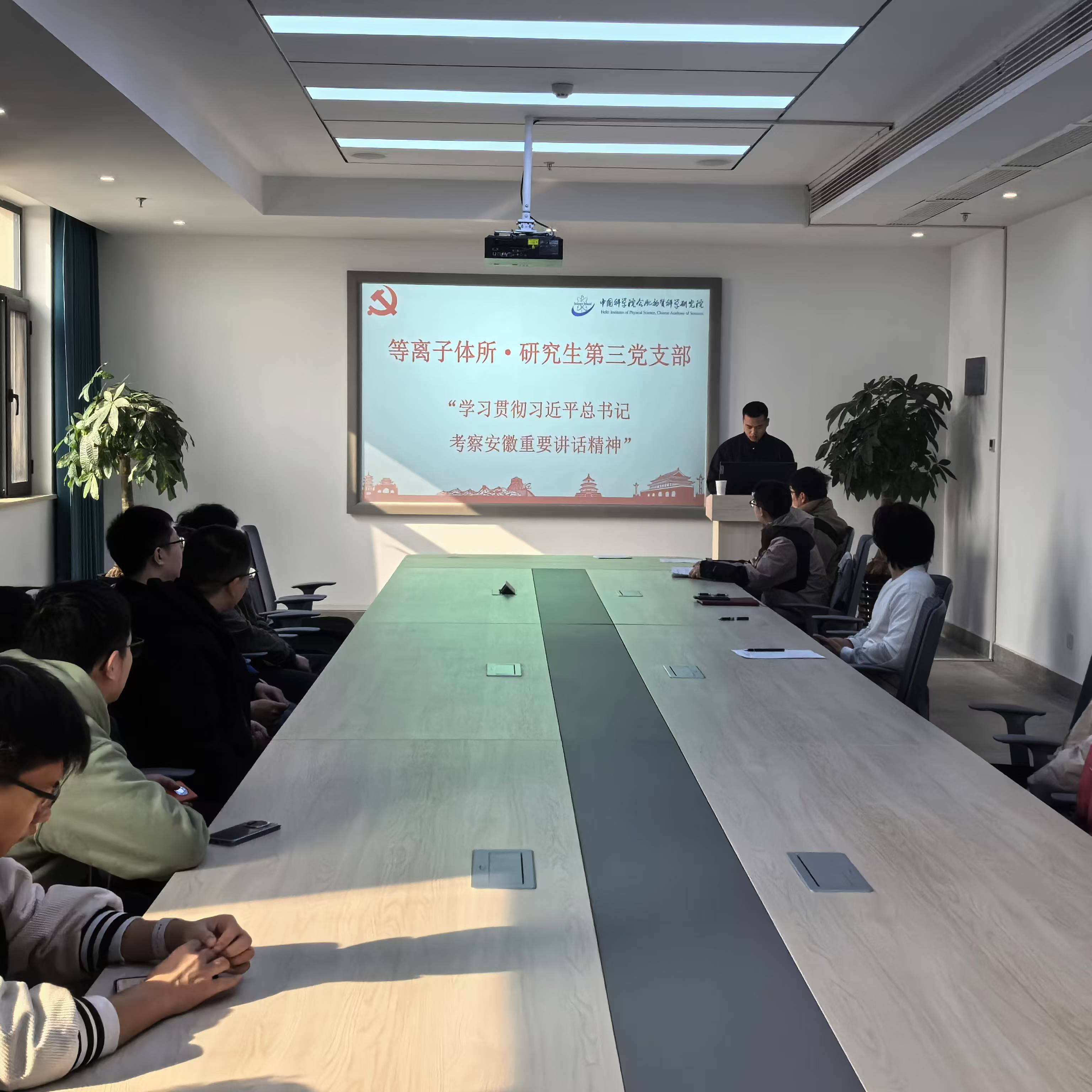 12月6日,研究生等离子体所第三党支部在四号楼四楼中间会议室召开支部党员大会,讨论全诚同志预备党员转正事宜。会议由支部书记李解同志主持。