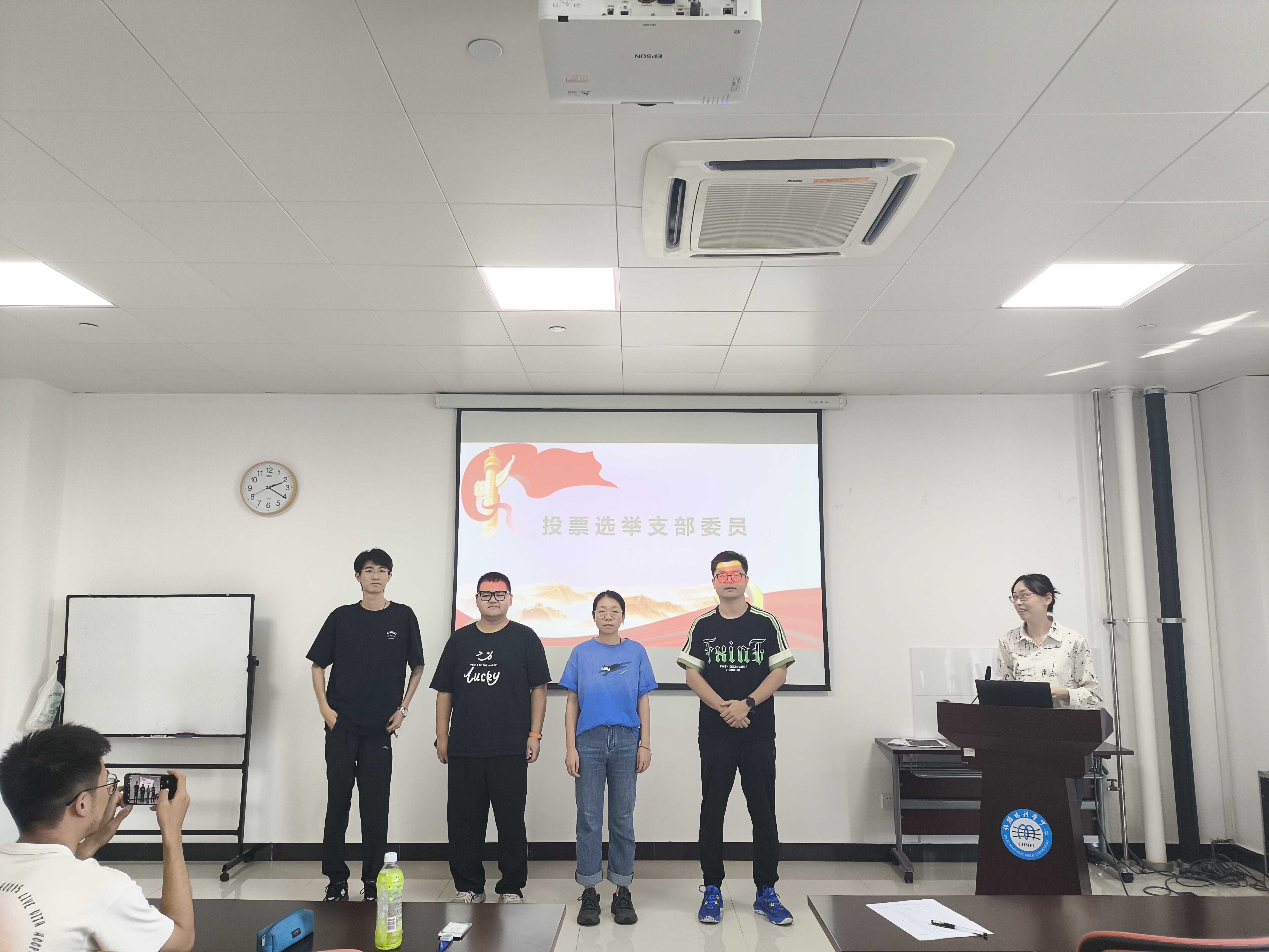 杜涵涵首先宣读了换届选举方案,并简要介绍五位候选人的基本情况。随后,五名候选人依次发言,介绍了个人经历和对于党支部未来工作的设想。大会采用无记名差额选举方式,最终选举出申云飞、王子辉、张强博和李锦伟四位同志为新一届党支部委员会委员。