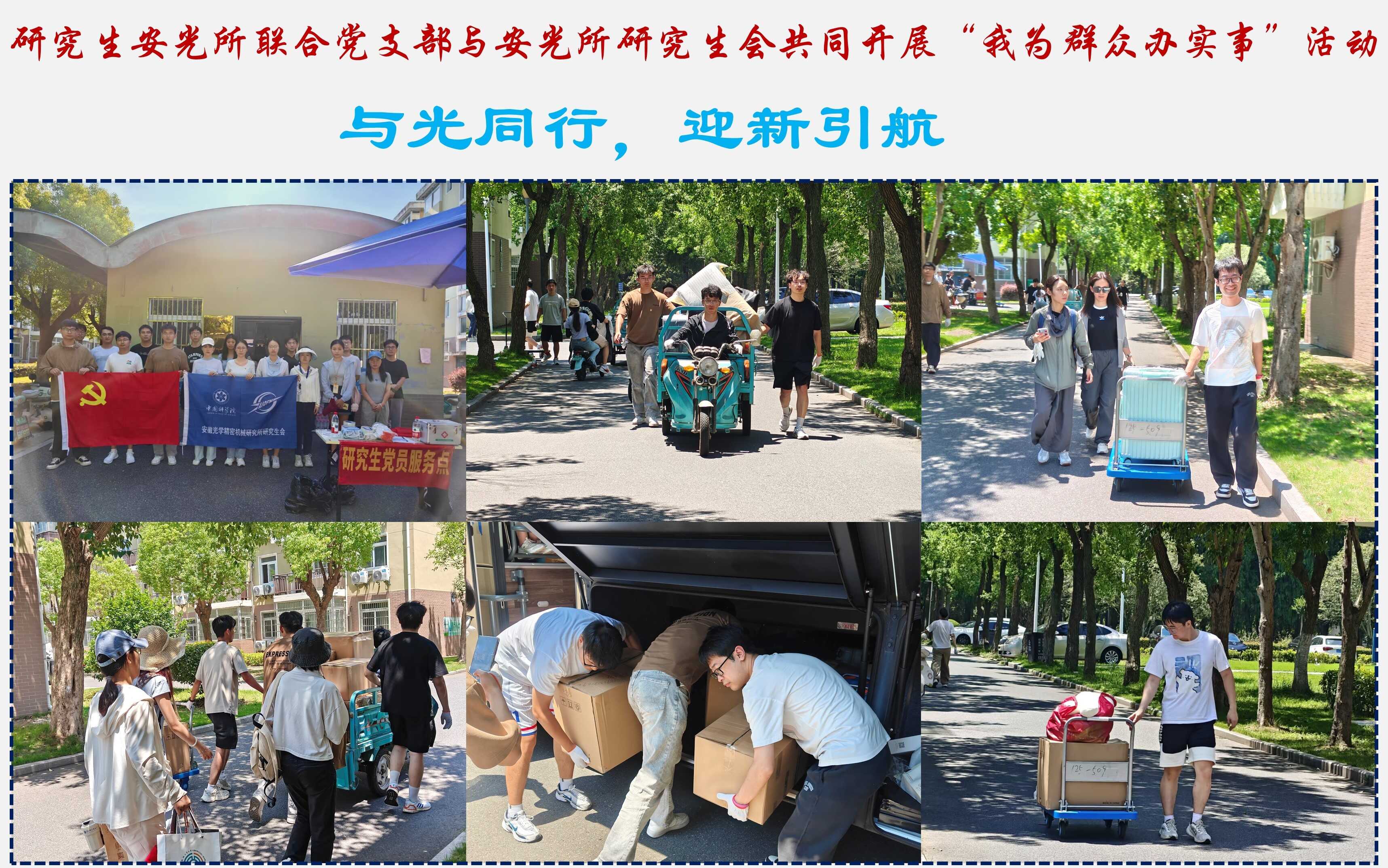 盛夏衔新时,青春启新章。为深化党员志愿服务意识,充分发挥研究生党支部战斗堡垒作用,研究生安光所联合党支部携手安光所研究生会,于 7 月 3 日 至4 日开展 “与光同行,迎新引航” 主题党日活动。