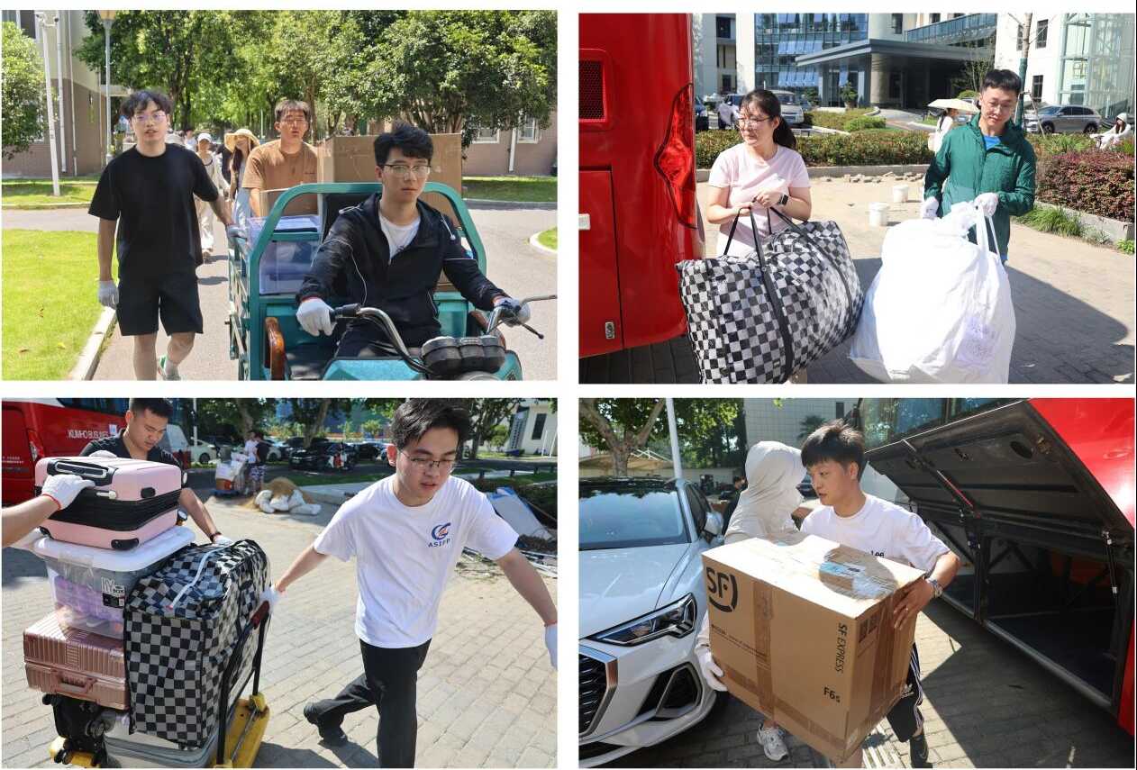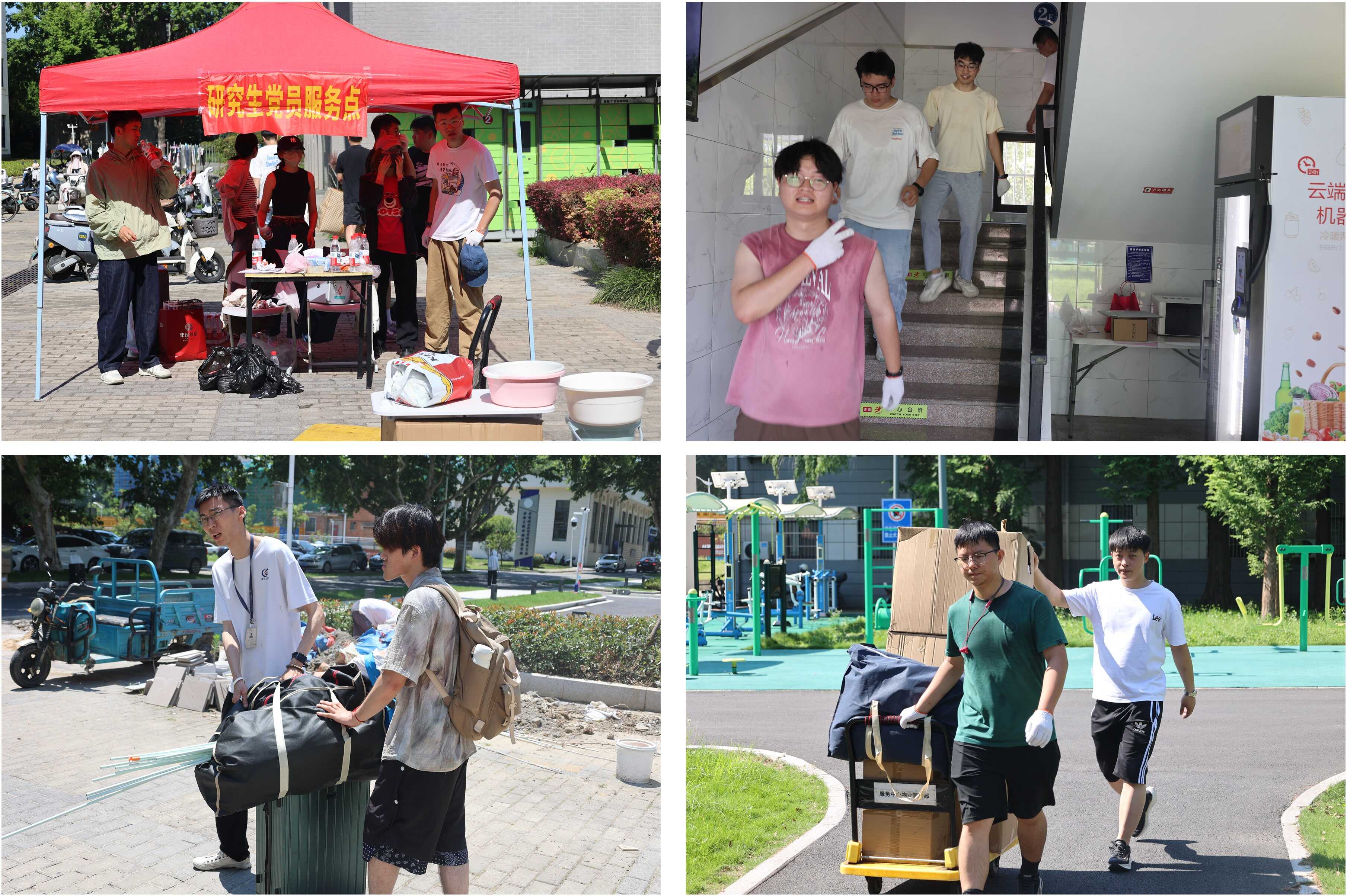 筹备阶段,研究生等离子体所党支部与研究生会便展现出高度的组织性和责任感。通过积极联络各兄弟支部的成员,确定各自分工和职责,同时各支部支委与研会代表密切协作,提前与24级各班班长精准对接,详细掌握新同学抵达时间和行李情况。通过广泛动员,各支部党员和积极分子们踊跃报名,积极投身志愿服务。活动前夕,志愿者们进行了细致的分组安排,准备了充足的矿泉水、抽纸、湿巾、常用药品以及便捷的平板推车和三轮车,确保服务高效、安全、贴心。7月3日清晨,党员志愿者们便精神饱满地出现在科学岛各个宿舍楼前,他们化身“最美搬运工”,一趟又一趟地往返于下车点与宿舍楼之间,耐心细致地将每一件行李安全、准确地送达新生宿舍门口。汗水浸湿了衣衫,但笑容始终挂在脸上。