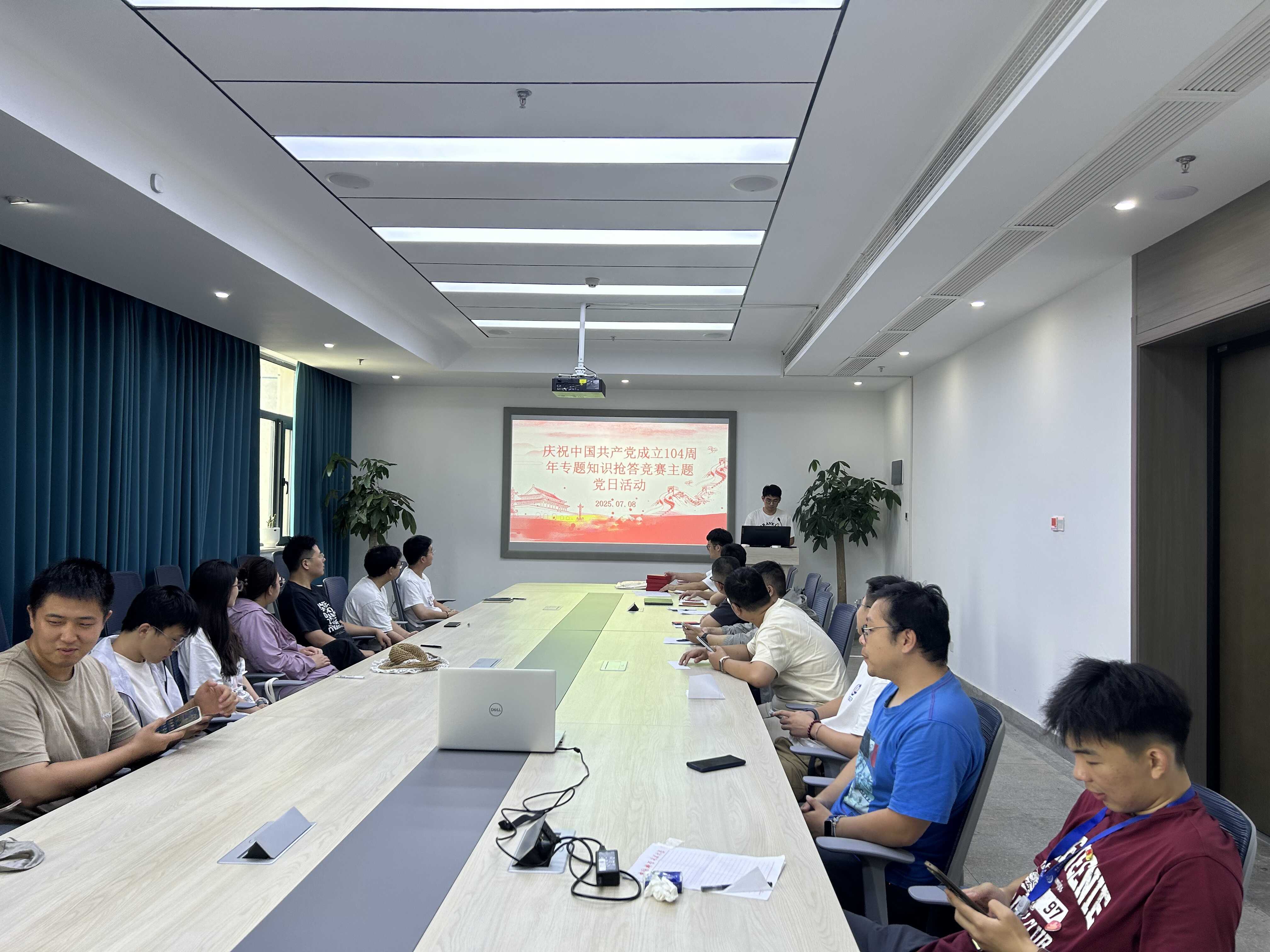 为庆祝中国共产党成立104周年,重温党的光辉历程,弘扬伟大建党精神,7月8日下午3点,研究生等离子所第二党支部在四号楼四楼中间会议室组织开展了专题知识抢答竞赛主题党日活动。活动由组织委员高硕尉同志主持,支部全体党员和入党积极分子参与。