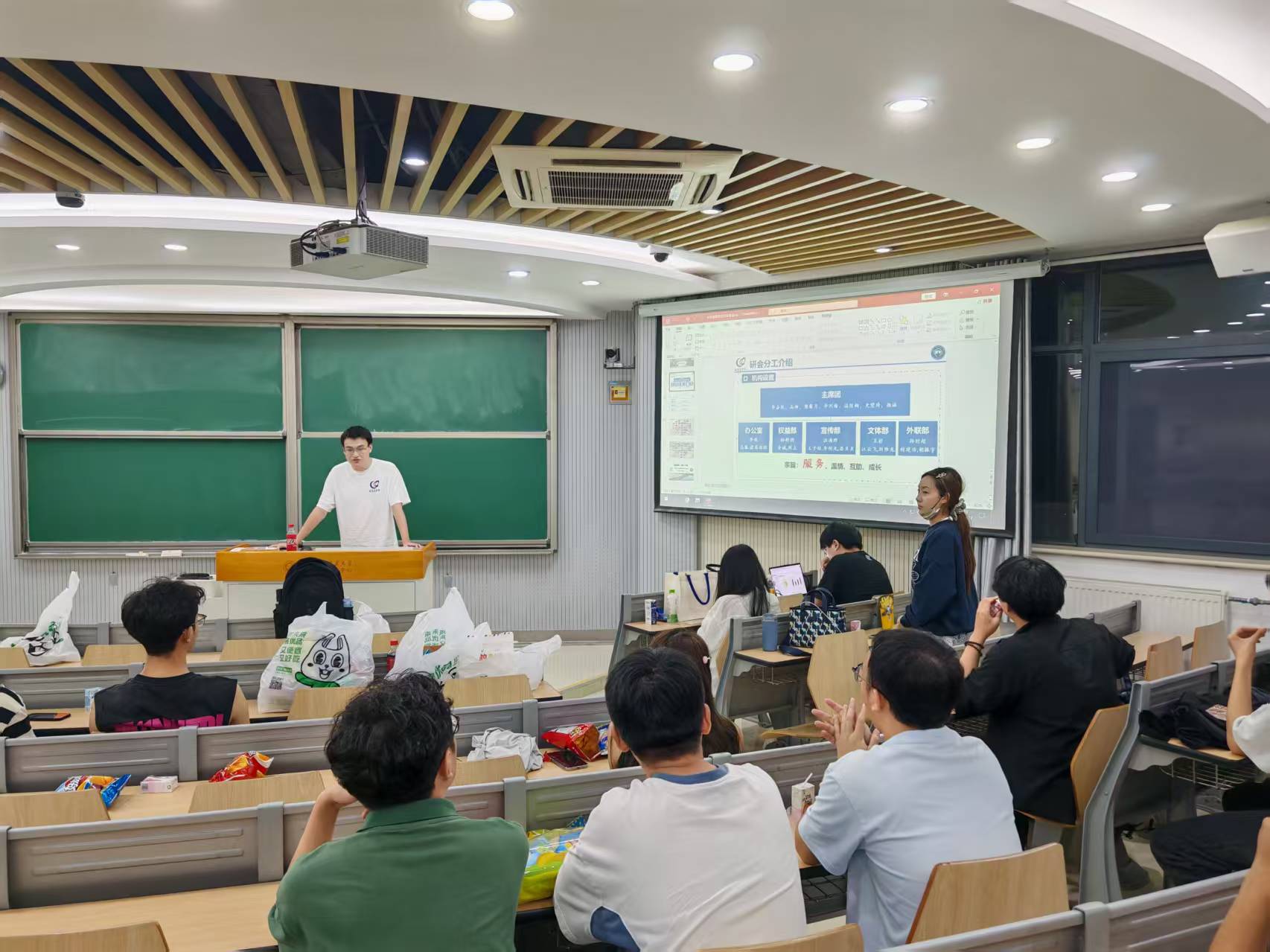 主持人从研会组织架构、特色内部活动、对外合作项目及历年荣誉奖项四个维度展开,重点突出研会“服务、温情、互助、成长”的核心理念与服务同学的宗旨,为研究生搭建交流与成长的平台。通过详细介绍,新生对研会工作有了清晰认知,不少同学表达加入意愿,期待为研会发展贡献力量。