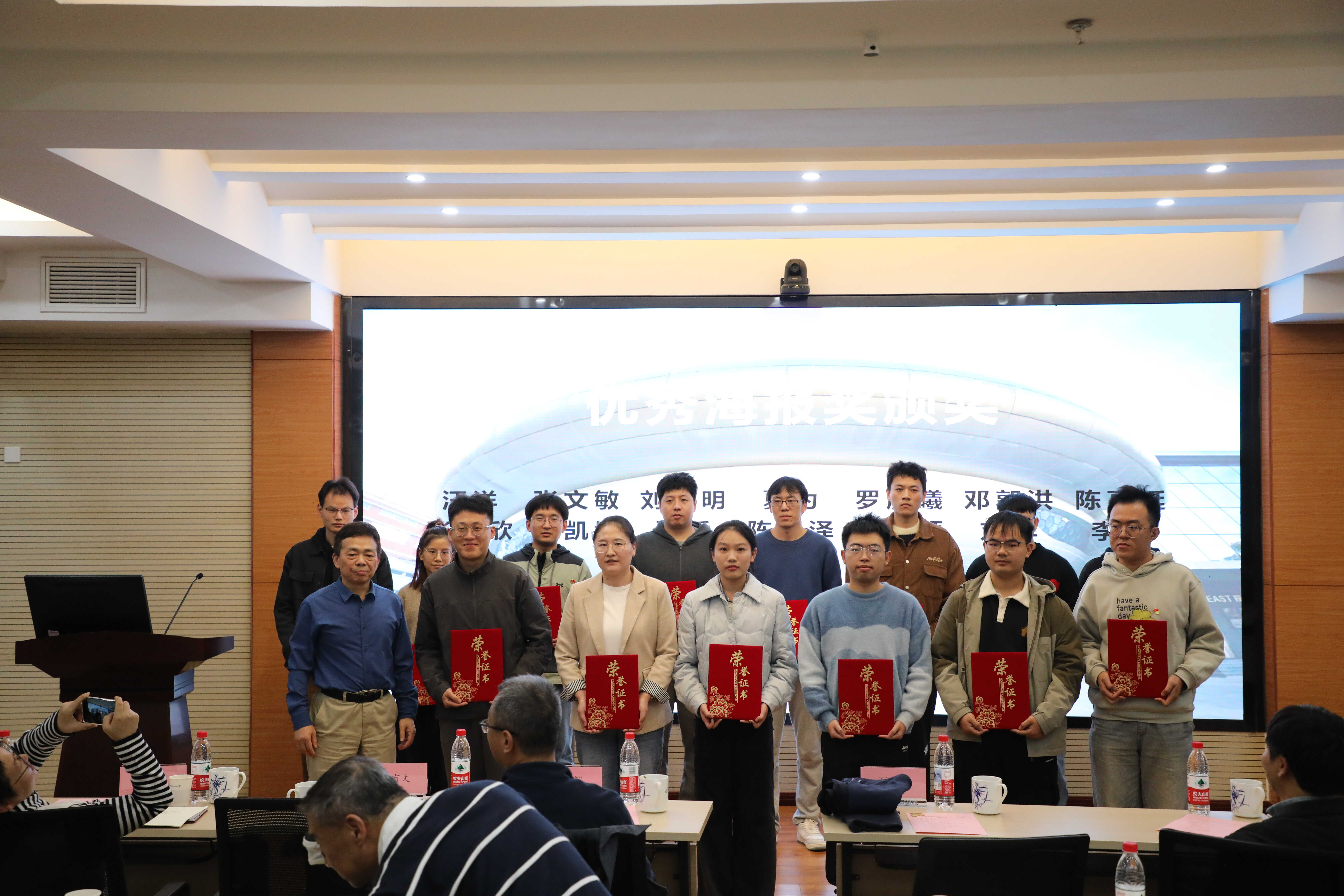 最后,万宝年院士为本次活动的优秀海报获奖者颁奖,对同学们的研究成果与创新精神给予了充分肯定。在全场的掌声中,学生代表手持鲜花稳步上前,向万宝年院士致以最诚挚的敬意,感恩他以深厚学识与崇高风范,为青年学子树立了求索前行的榜样,为整场活动画上了温暖而圆满的句号。