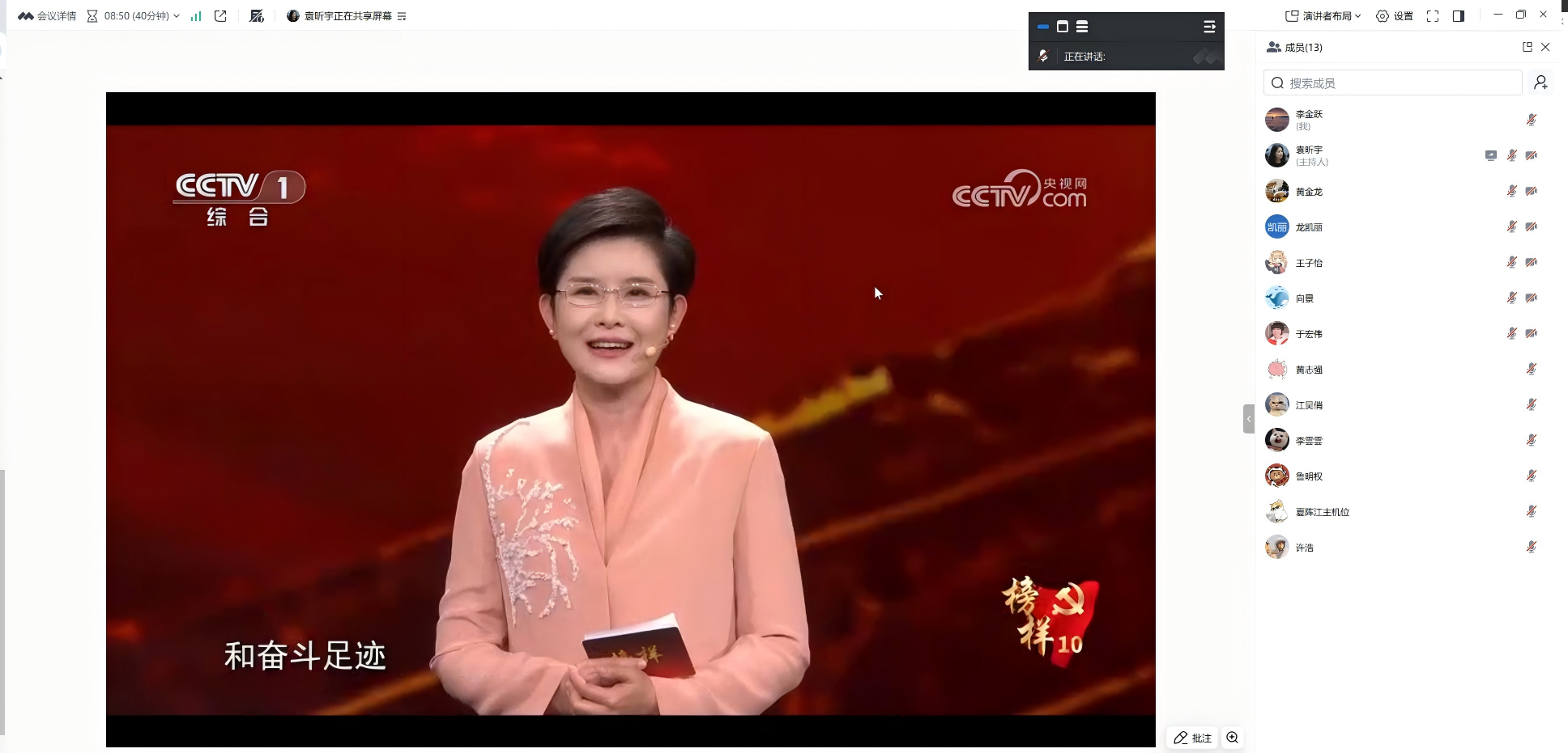 1月20日晚,研究生健康所第一党支部组织全体党员通过腾讯会议线上集中观看由中央组织部、中央广播电视总台联合制作的《榜样10》专题节目。节目同步在央视CCTV-1晚间播出,并在共产党员网、共产党员手机报、共产党员微信等平台集中展播。党支部书记袁昕宇主持活动,全体党员按时参会观看。《榜样10》通过典型人物讲述、现场访谈、重温入党誓词等形式,生动展现了新时代共产党人坚定理想信念、践行初心使命、勇于担当作为的精神风貌,集中展示了优秀共产党员和先进基层党组织的感人事迹。节目中,一个个鲜活的榜样形象、一段段平凡而伟大的奋斗故事,让支部党员深受震撼与鼓舞。
