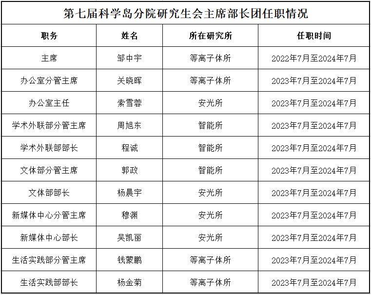 科学岛分院第七届研究生会组成