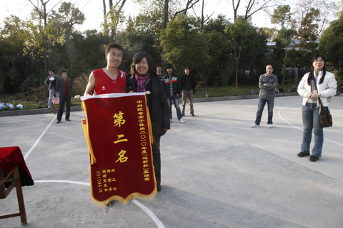 由等离子体所研究生会组织,所研究生会、所团委、所工会联合举办的2010年度“迎新杯”篮球赛在完成小组淘汰赛后进入了决赛阶段,11月19日下午,研制中心代表队和一室代表队展开精彩对决,最终研制中心代表队以1分的优势惊险夺得冠军,一室代表队屈居亚军。在此之前的一场对决赛中,十二室代表队战胜三室代表队,从而分获第三名、第四名。决赛后现场举行了激动人心的颁奖仪式。