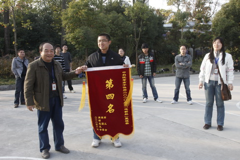 工会主席陈尔恋为获得第四名的参赛队颁奖
