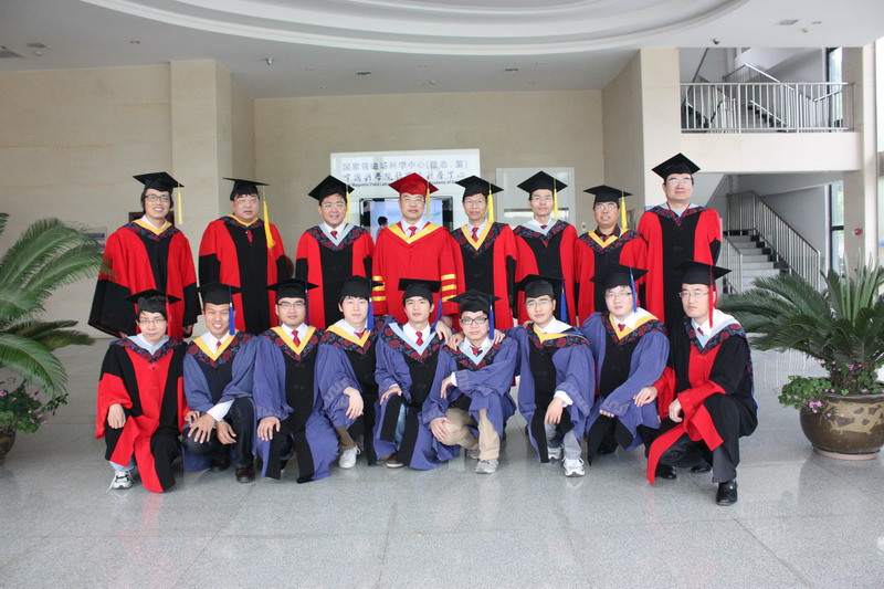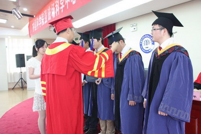 在庄严的国歌声中,毕业典礼正式拉开了序幕。首先孙主任对中心的研究生情况进行了简单介绍,并且肯定了即将毕业的研究生在学期间取得的成绩。随后,最激动人心的时刻到了。在慷慨激昂的音乐中,身穿硕士服、博士服的毕业生依次走上台,强磁场中心主任匡光力为9名毕业生扶正流苏,并且颁发了毕业证书。