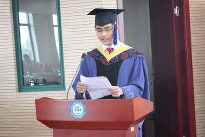 安徽省优秀毕业生获得者郑磊代表全体毕业生发言,道出了所有在场毕业生对中心的不舍,对老师的感激。他们会牢记“博学笃志,格物明德”的校训,牢记恩师们的教诲,夯实基础,勤于实践,用自己的努力和成功来回报社会。千言万语汇成一句:“今天我们以身在强磁场为荣,明天让强磁场中心以我们为荣” 。
