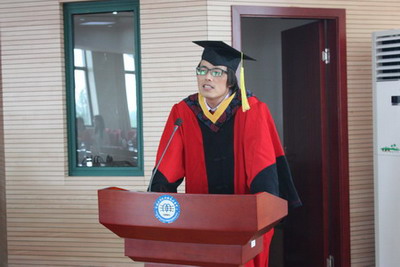随后,导师代表欧阳峥嵘研究员发表了感人肺腑的讲话:每年毕业总有一种复杂的情绪,浓浓的师生情不言而喻。句句的叮嘱,字字刻在了在场所有人的心中。最后,他把胡适先生的讲话作为赠言送给了所有毕业生,希望大家不要抛弃学问。