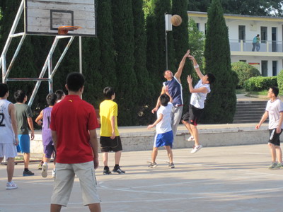 参赛的队伍分别为毕业生组成的“毕业生队”和其他年级学生组成的“非毕业生队”。比赛刚开始两队都派上了各自的主力队员展开激烈的角逐,比赛的上半场“非毕业生队”依靠精准的投篮取得领先,“毕业生队”也不甘示弱,通过暂停及时调整战术,并加强防守力度,逐渐将分差缩小,紧紧咬住比分。后面的比赛更加精彩,双方队员不顾炎热的天气,奋力拼抢,时而快攻上篮,时而上演漂亮的抢断……场外的同学也为队员们加油助威,并不忘用相机记录比赛中的精彩瞬间。比赛结束,最终“毕业生队”以微弱的分差不敌“非毕业生队”。