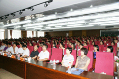 | 会场 | 党委书记匡光力作入学教育报告 | 参加典礼的同学们和出席会议的相关领导 |