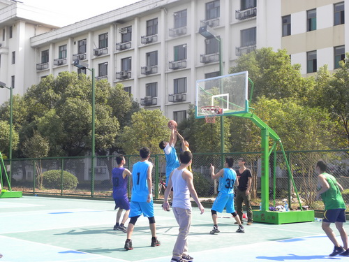 十月的天气,早上煞是清凉,中午又稍带点炎热。新修的场地给比赛又增添了几份激情,相对炙热的阳光与队员们高涨的情绪相得益彰。比赛开始前新老队员进行入场式,然后进行争球,最前抢的球权的还是身高稍显优势的新队员。比赛开始后,新老生两边打得十分激烈,双方队员完全投入到比赛当中。在比赛过程中双方根据比赛的实时情况不断的调整战术,也根据双方参赛队员的情况不断的更换队员,以适应不同的战术配合。最终还是固体所的老队员凭借更多的经验和配合赢得了比赛。