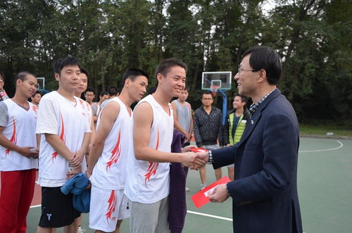 比赛在裁判员的口哨声中落下帷幕,研究生处处长吴海信给前三名的队伍颁发了奖金,并鼓励大家再接再厉,在今后的比赛中取得更好成绩,并和参赛队员合影留念。