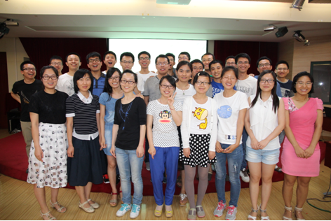 6月10日晚上七点,强磁场中心五楼大会议室开始传来阵阵欢声笑语,中心的全体毕业生和非毕业生在这里敞开心扉,交流互动,尽情K歌。一个个分队PK的小游戏贯穿“欢送会”始末,并将晚会逐渐推向高潮。“左手右手”考验了大家的反应能力和左右手的协调控制能力,大家玩的不亦乐乎;“杯水保卫战”要求参与者双手握盛满水的水杯跳绳十次,所剩水多者获胜,大家由开始的不适应慢慢掌握了技巧,变成了游戏高手;“铁人三项”是最刺激也是最考验参与者胃的游戏,成功的将现场气氛带向高潮;“疯狂猜词”与“双剑合臂”游戏则考验了组内成员的默契程度。游戏的间隙,大家也一展歌喉,李剑的一曲《敢问路在何方》水平媲美专业水准,技惊全场!有“强磁场情歌王子”之称的邹贵弘也献上一首首金曲,博得大家阵阵掌声。最后,一块写有“毕业快乐”的大蛋糕被带入会场,伴随着大家对毕业生衷心的祝福,“欢送会”圆满落下帷幕!